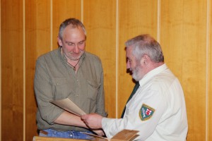 Ein weiterer Punkt auf der Tagesordnung waren die Ehrungen. Bei denen wurde Hans Baumgartner nach 38 Jahren Arbeit im Ausschuss geehrt und verabschiedet. Bei der Entstehung des Vereins war er 2. Gründungsvorstand. Bei allen Festen fand man Hans und seine Frau Martha hinter dem Steckerlfischgrill. Ausserdem verkauften er und seine Frau 28 Jahre lang Angelkarten für den Verein.